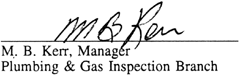 ALSO, please be advised that in accordance with RHWHA guidelines, radiant only systems shall operate as two temperature systems utilizing a mixing valve unless the manufacturer's published data (which is acceptable to the authority having jurisdiction) allows the boiler and venting system to function safely otherwise. The boiler must not operate at such a low temperature as to cause the flue gasses to condense in the chimney and/or boiler. EFFECTIVE IMMEDIATELY, should you install a hydronic radiant panel system with piping not meeting the above requirements (with respect to permeability) your District Building Inspector will advise the Building Permit holder and record this information on record drawings during the slab inspection and inform the District Plumbing Inspector to check on final to ensure that the system is in accordance with Items 1 and 2 above prior to granting final acceptance or Occupancy Permit clearance. MBK/IMcM:lc |